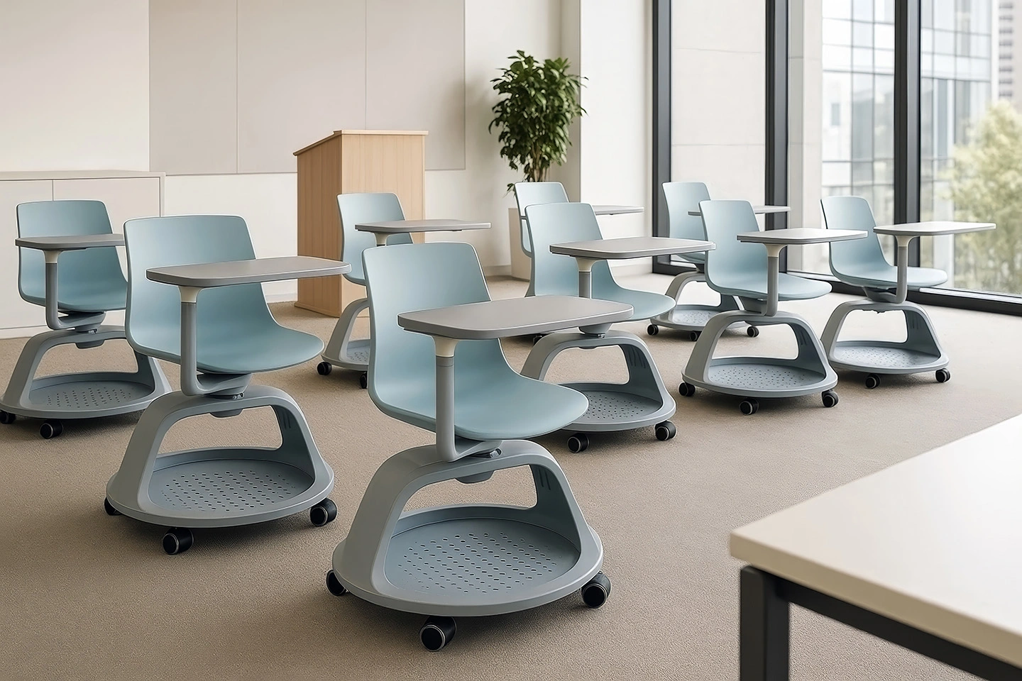 Mobiliario funcional y ergonómico para aulas, salas de capacitación y espacios de aprendizaje.